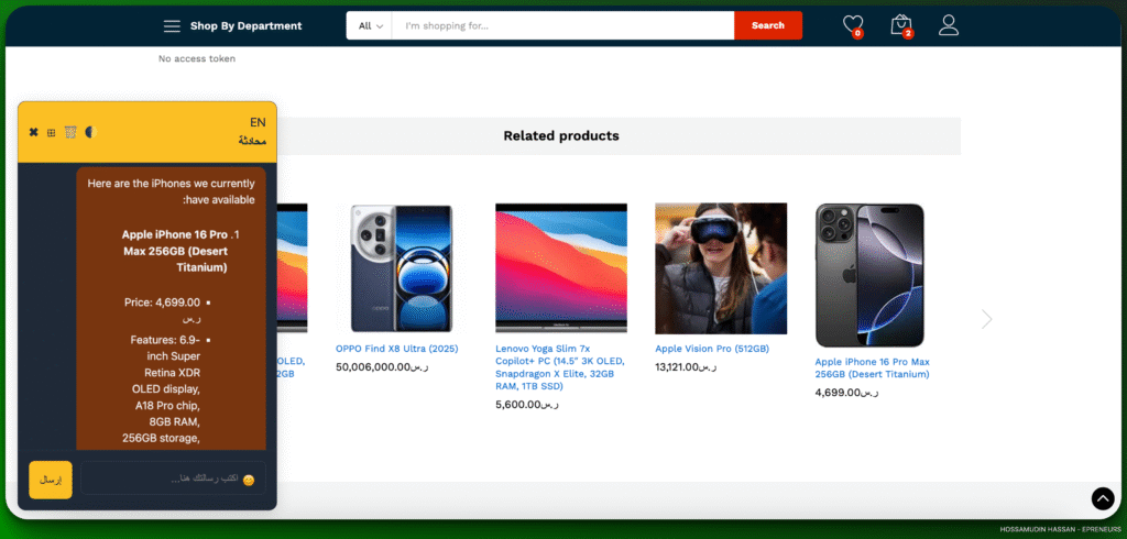 أنا وفريق ePreneurs موجودين لدعم أصحاب المتاجر العرب، وكمان قناة AI Hoss للشرح الإنجليزي موجودة لكل اللي عايزين يتعلموا أكتر! 😉 📬 تواصل معانا لو حابب استشارات أو مساعدة شخصية في تنفيذ الـAI Agent لمتجرك.